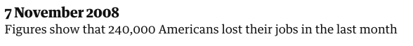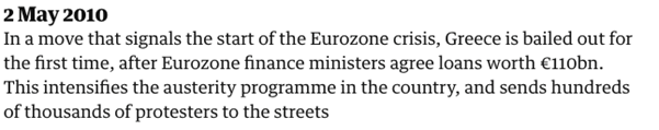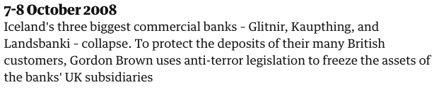 Banks had to restrict lending, and this slowed down the economy, and unemployment increased. The Guardian presents the timelime below: