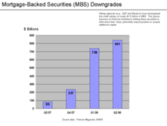 Now we have a waterfall effect – these defaults meant the owners of MBS and CDO’s began to feel the effect of defaults. Their securities dropped in value, and quickly  – but not immediately.